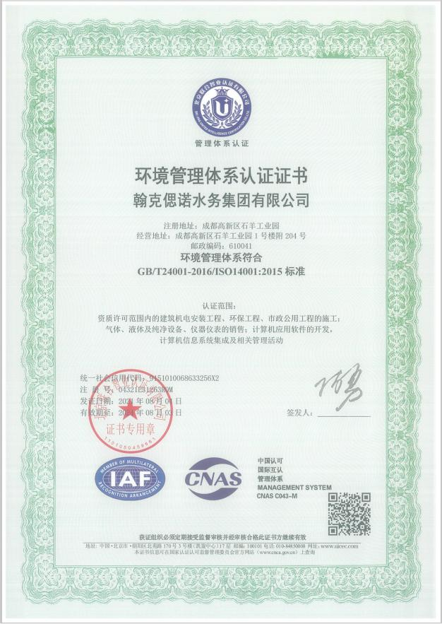 环境管理体系认证证书1