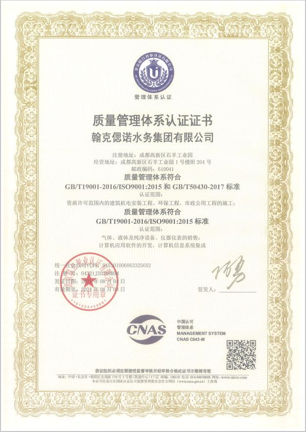 质量管理体系认证证书9
